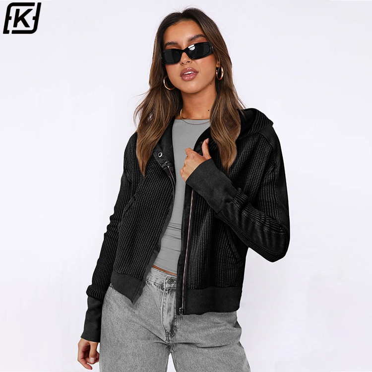 Slouchy zip-up women's hoodie short knit